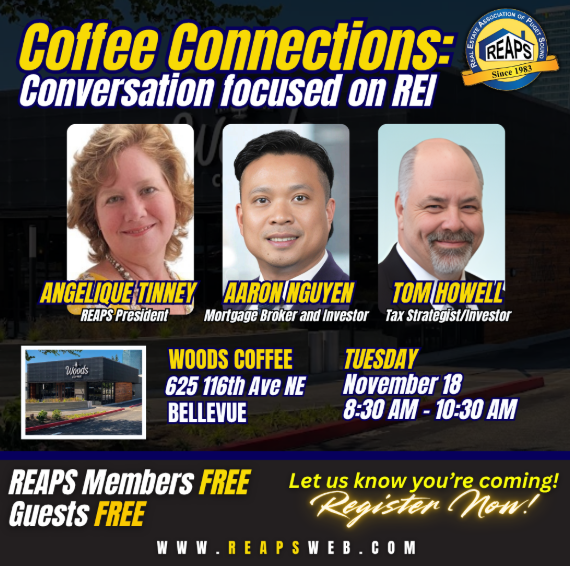 Tuesday Nov 18th BELLEVUE 8:30 - 10:30 AM Come chat with fellow real estate investors.