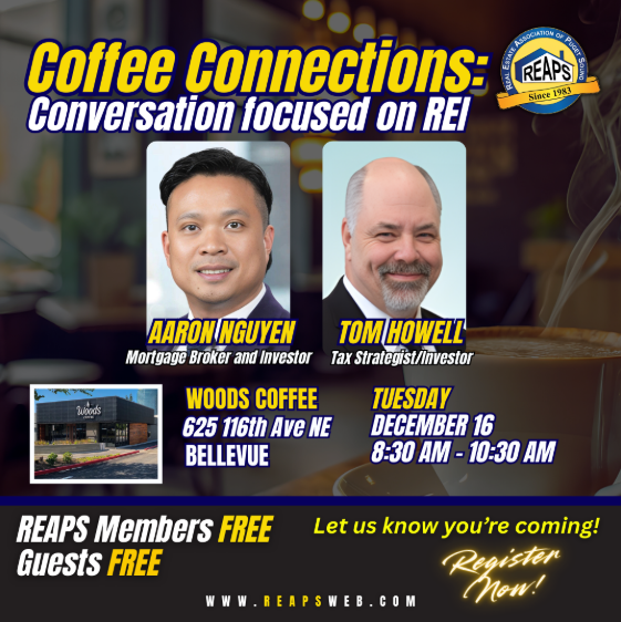 Dec 16th Tues 8:30 - 10:30am Coffee & REI Conversations BELLEVUE
