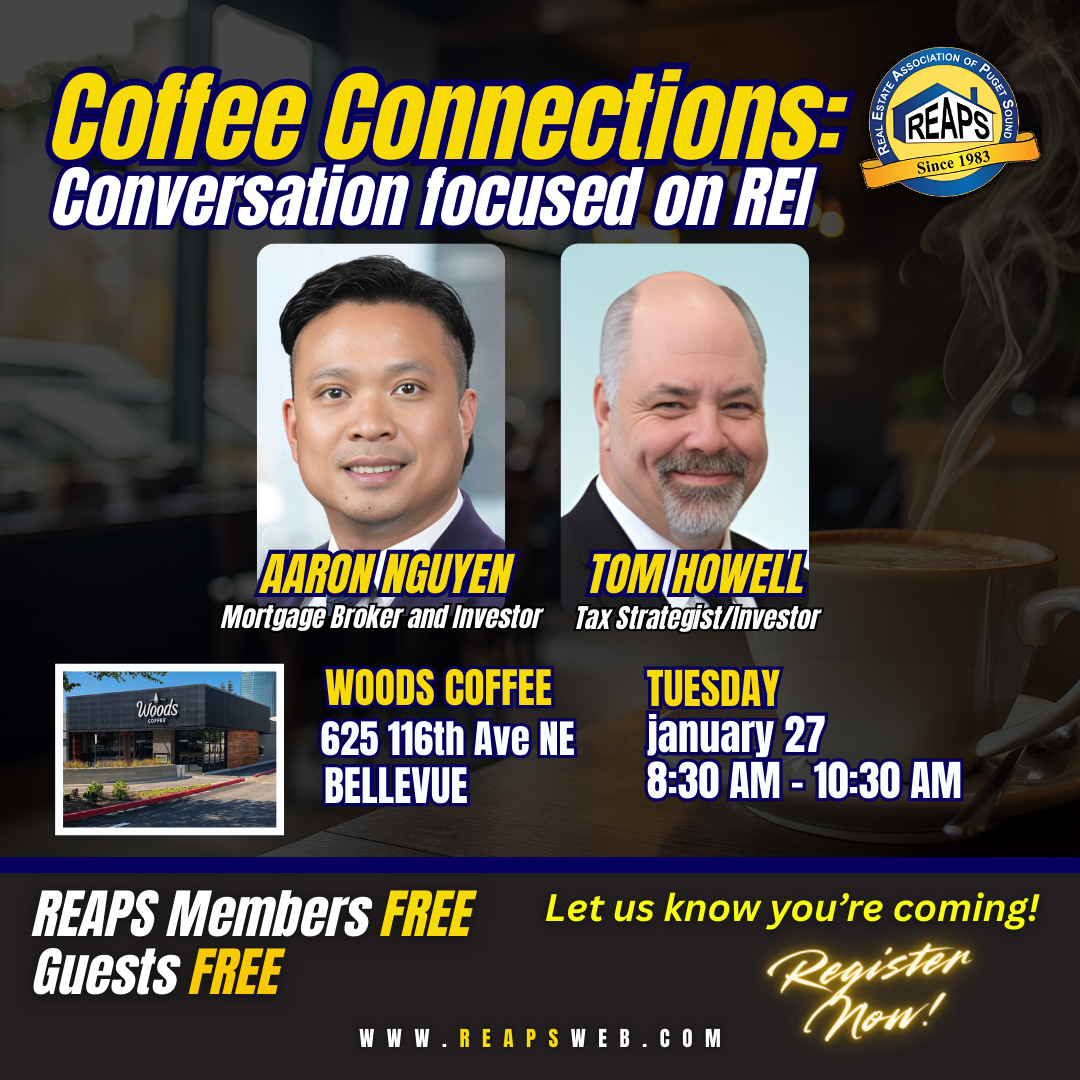 Tuesday Jan 27th BELLEVUE 8:30 - 10:30 AM Come chat with fellow real estate investors.